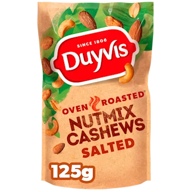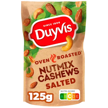 DUYVIS®NUTMIX CASHEWS IS CAREFULLY SELECTED FOR taste & crunchiness WHICH ALLOWS THEM TO FUEL spontaneous joy, FOR EVERY MOMENT OF THE DAY! GREAT FLAVOUR FROM THE OVEN. EXTRA CRUNCHY.