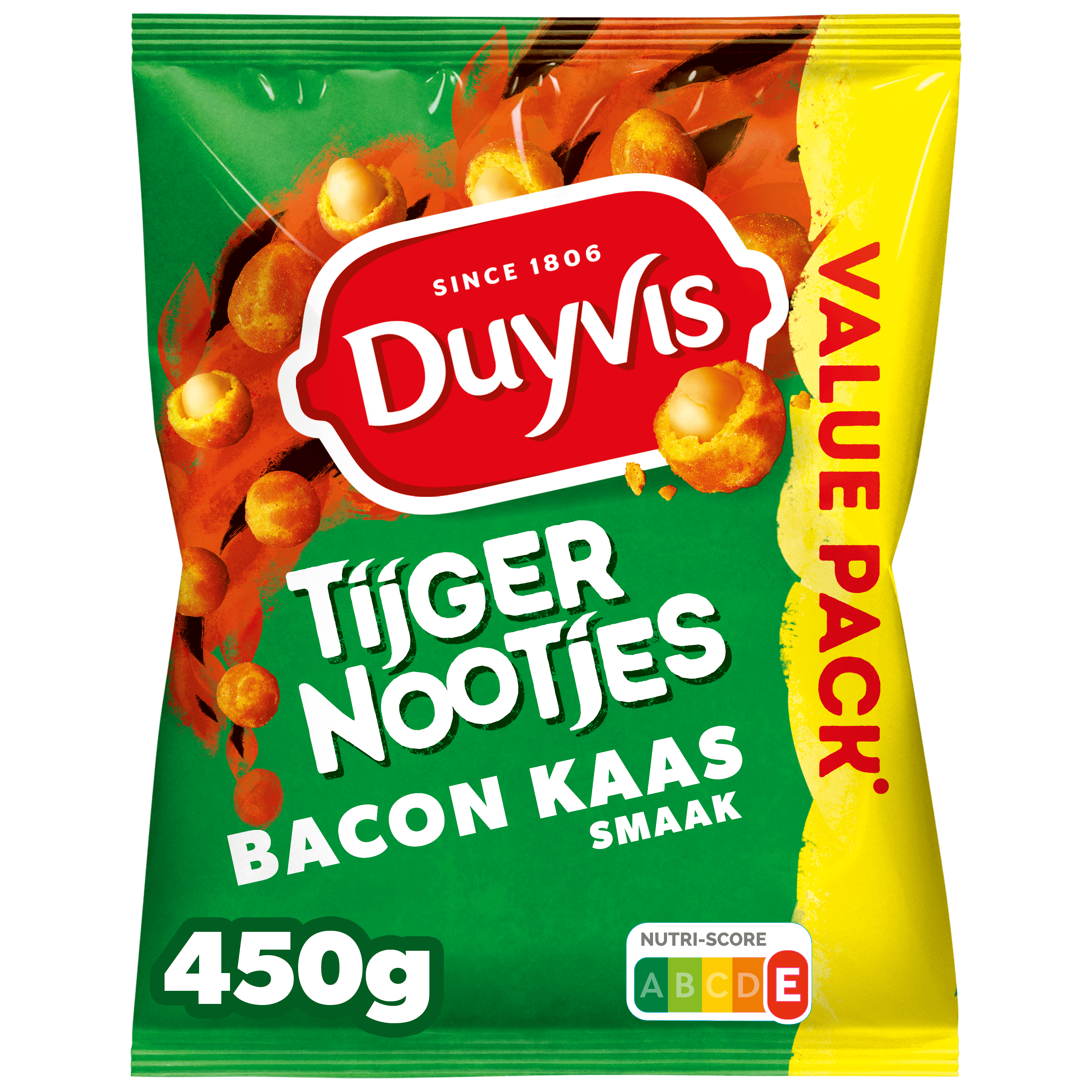 Pinda's in een krokant, dubbel jasje met bacon- en kaassmaak