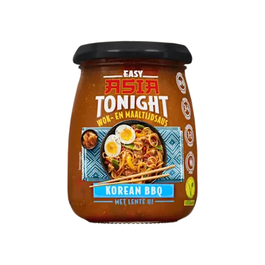 Easy Asia Tonight Korean BBQ is een licht pittige wok-en maaltijdsaus in Koreaanse stijl op basis van gochujang, met paprika en lente ui. Geen tijd of geen zin om lang in de keuken te staan?