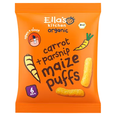 Ingrediënten: 72% maïsmeel*, 15% zonnebloemolie*, 6% gedroogde wortels*, 4% gedroogde pastinaken*, 2% rijstmeel*, <lt/>1% TARWE zemelen*, <lt/>1% gedroogde uien*, <lt/>0,1% thiamine (Vitamine B1). * = biologisch. Kan melk en soja bevatten.