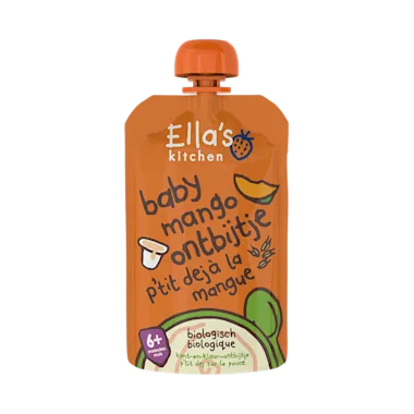 Ingrediënten: 63% mango's*, 34% yoghurt (MELK)*, 2% HAVERbloem*, 1% rijstebloem*, een beetje geconcentreerd citroensap*, * = biologisch