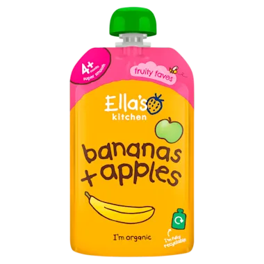 Babyvoeding. Biologische bananen- en appelpuree met citroensapconcentraat.