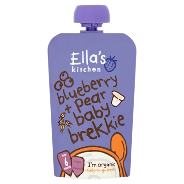 Ingrediënten: 51% peren*, 30% volle YOGHURT*, 16% bosbessen*, 2% HAVERBLOEM*, 1% rijstebloem*, ciroensapconcentraat*. * = biologosch.