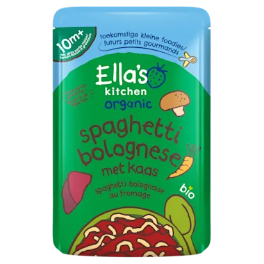 Ingrediënten: 35% tomaten*, 21% gekookte pasta* (water, durumTARWE*, gedroogd EIwit*), 17% wortelen*, 10% rundvlees*, 5% uien*, 5% groentebouillon (water en groenten: uien*, pastinaken*, koolraap*, prei*), 4% champignons*, 2% cheddarkaas* (MELK), <lt/>1% knoflook, <lt/>1% gemengde kruiden (peterselie*, tijm*, oregano*, salie*), <lt/>1% zwarte peper*, * = biologisch.