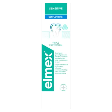 elmex Gentle White Sensitive tandpasta beschermt 24 uur* tegen gevoelige tanden. De gevoelige tandpasta versterkt de tanden en helpt het natuurlijke wit te herstellen. *Bij aanhoudend poetsen 2x/dag.