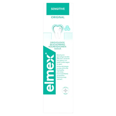 Ingredients: Aqua, Sorbitol, Hydrated Silica, Oleaminopropylamineth-3 HCI, Hydroxyethylcellulose, Aroma, Cocamidopropyl Betaine, Saccharin, Sodium Fluoride, Limonene, Bevat: Natriumfluoride (1450 ppm F⁻).