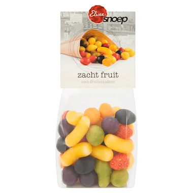 Ingrediënten: suiker, glucosestroop, dextrose, voedingszuur (E330), aroma’s, kleurextracten (saffloer, spirulina, citroen, vlierbes), verdikkingsmiddel (Arabische gom), kleurstoffen (E100, E120, E132, E141, E153, E160a), glansmiddel (E901), plantaardig vet (palm).Kan PINDA'S bevatten.