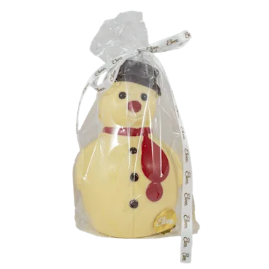 Holfiguur Sneeuwman met 8% gekleurde cacaodecoratie