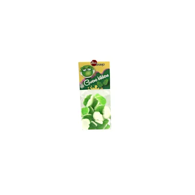 Ingrediënten: glucosestroop, suiker, water, gelatine (varken), maltodextrine, voedingszuur (E330), aroma’s, kleurstoffen (E100, E133), plantaardige olie (kokos), glansmiddel (E903).
