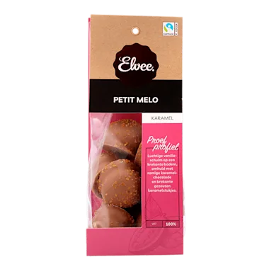 Luchtige suikerwerk vulling met krokante bodem, karamel en overgoten met witte chocolade met karamel.