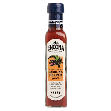 water, tomatenpasta, suiker, alcoholazijn, puree van carolina reaper (5%) (puree van rode chilipepers, zout, carolina reaper chilipepers (8%)), sinaasappelsapconcentraat, zout, gemodificeerd zetmeel (e1422), voedingszuur (azijnzuur), bird's eye pepers, komijn, knoflook, conserveermiddel (kaliumsorbaat).