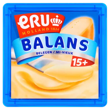 ERU Balans Belegen is een heerlijk magere 15+ smeerbare kaas, gemaakt van Goudse kazen met een vleugje yoghurt en een belegen smaak. ERU Balans bevat 5% vet en past daarmee perfect in een gezond leef- en voedingspatroon. Daarnaast bevat ERU Balans 75% minder vet en 34,5% minder natrium dan soortgelijke smeerbare kazen. Ideaal voor op een boterham, maar ook heerlijk op een cracker of door een salade.