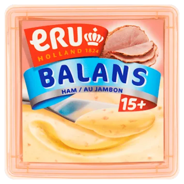 ERU Balans Ham is een heerlijk magere 15+ smeerbare kaas, gemaakt van Goudse kazen met een vleugje yoghurt en stukjes magere ham. ERU Balans bevat 5% vet en past daarmee perfect in een gezond leef- en voedingspatroon. Daarnaast bevat ERU Balans 75% minder vet en 34,5% minder natrium dan soortgelijke smeerbare kazen. Ideaal voor op een boterham, maar ook heerlijk op een cracker of door een pastasalade.
