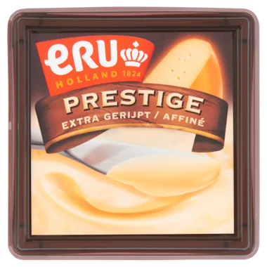 ERU Prestige is een smeerbare kaas gemaakt van extra gerijpte, belegen kazen die meer dan 16 maanden hebben kunnen rijpen. Hierdoor krijgt ERU Prestige een unieke, krachtige smaak – maar met een zachte en romige textuur. Ideaal voor op brood, maar ook heerlijk op een cracker of op een hamburger.