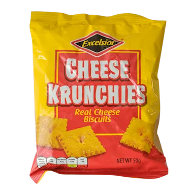 Ingrediënten: Verrijkte TARWEbloem (TARWEbloem, niacine, gereduceerd ijzer, thiamine, riboflavine, foliumzuur), water, plantaardige olie (palmolie en of geraffineerde sojaboonolie), kaaspoeder (MELK), zout, gist, suiker, rijsmiddel (natriumbicarbonaat), kruiden: paprika, kleurstof (E160b annatto norbixine), uipoeder, witte peper.