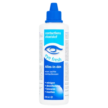 Eye Fresh Contactlensvloeistof Alles-in-èèn zacht is vloeistof voor het reinigen, desinfecteren, bewaren en inzetten van zachte contactlenzen. Bestel deze en andere zelfzorgmiddelen direct in onze webshop.