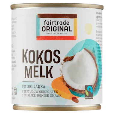 Deze kokosmelk komt uit Sri Lanka. Daar werken de kokosboeren met respect voor hun omgeving en gebruiken alleen natuurlijke mest. In een kleine fabriek wordt van de kokosnoten romige kokosmelk geperst. Binnen twee uur zit de melk in blik, voor nog meer smaak in jouw gerecht.
