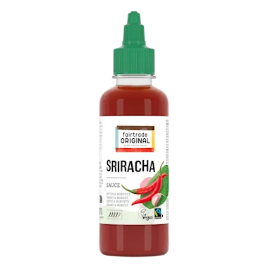 Chili/garlic/lemongrass: Fairtrade certified, traded, audited and sourced from Fairtrade producers. Fairtrade sugar: mass balance is used to match Fairtrade sourcing. Total: 56%, excluding water. www.info.fairtrade.net/sourcing