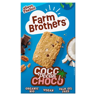 Ingrediënten: TARWEbloem*, suiker*, kokosvet*, kokos* (niet-EU) (14%), HAVERvlokken*, rijststroop*, PECANNOTEN* (niet-EU) (4%), pure chocolade* (niet-EU) (3%) (cacaomassa, rietsuiker,