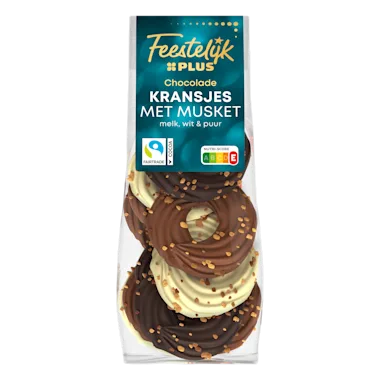 Feestelijk PLUS Chocolade kransen melk, puur en wit me