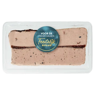 23% Varkenslever, varkensvet, 12% varkensvlees, rijstcrème (MELK, rijstbloem), 6% vruchtenbereiding (suiker, 26% cranberries, 22% veenbessen), 6 % cranberry-gelatine (43% cranberries, suiker, varkensgelatine, aardappelvezel, verdikkingsmiddel: pectinen, voedingszuur: citroenzuur), 6% kippenlever, varkensbindweefsel, SCHARRELEI, varkenseiwit, 1,4% truffeltapenade (champignon, olijfolie, 10% zwarte truffel, water, bamboevezel, zout, aroma), voedingszuur: E262/E325, nitrietpekelzout (zout, conserveermiddel: E250), suiker, Madeirawijn, gebakken ui, hoorn-des-overvloedspaddenstoel, specerijen (o.a MOSTERD), erwtenzetmeel, antioxidant: E300/E330, natuurlijk aroma, dextrose, truffelaroma, varkenshemoglobine.