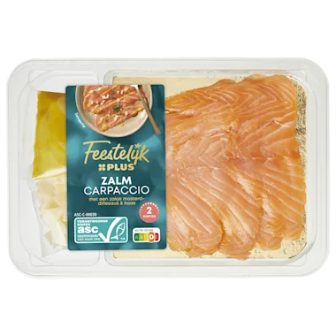 Feestelijk PLUS Gerookte zalmcarpaccio met dressing
