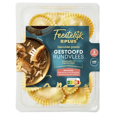 Feestelijk PLUS Gevulde pasta met gestoofd rundvlees i
