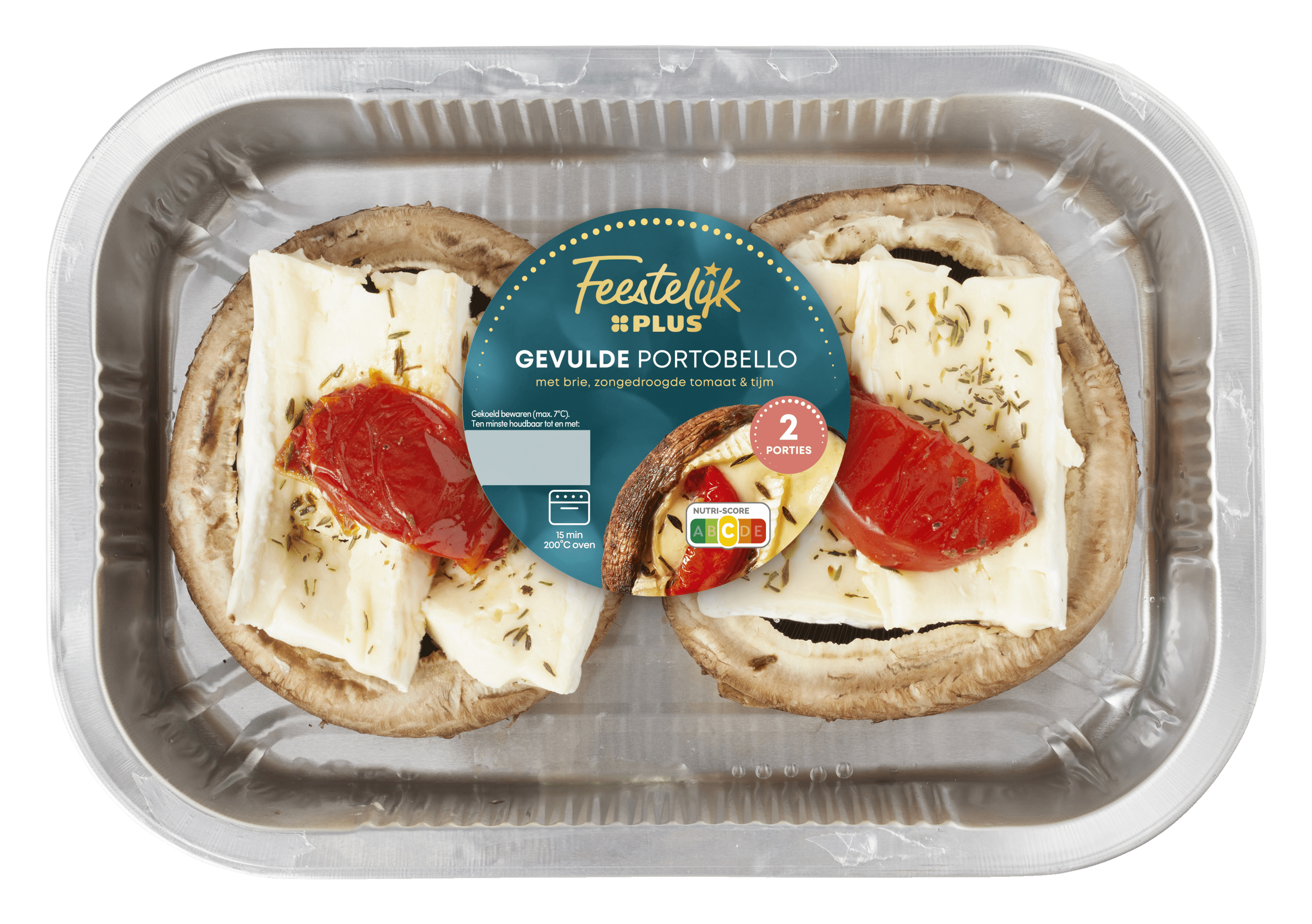 Ingrediënten: 60% portabella, 35% Brie (gepasteuriseerde koeMELK, zout, microbieel stremsel, zuursel (MELK)), 4% zongedroogde tomaten (gedroogde tomaten, zonnebloemolie, knoflook, zout, oregano, basilicum, rozemarijn, marjolein, citroenzuur, kaliumsorbaat), 1% tijm