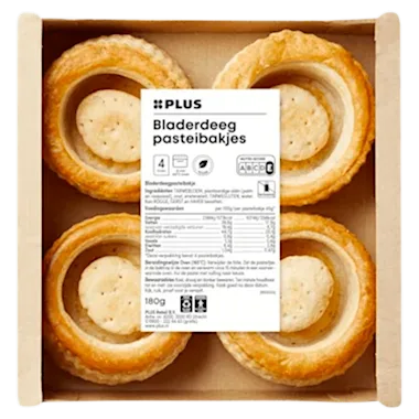 Oven (165°C). Verwijder de folie. Zet de pasteitjes in de baktray in de oven en verwarm ca. 15 minuten in een voorverwarmde oven. Vul de pastei met vulling naar keuze.