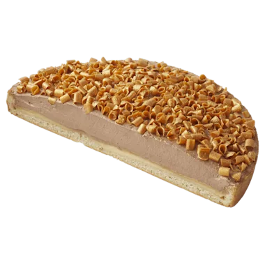 Vlaai met pudding, bavaroise met chocoladesmaak en gouden krullen met karamelsmaak