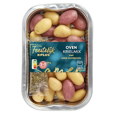 3. Zet het geheel met schaaltje in de oven en bak gedurende 35 - 40 minuten. Prik na afloop met een vork of de krieltjes gaar zijn.