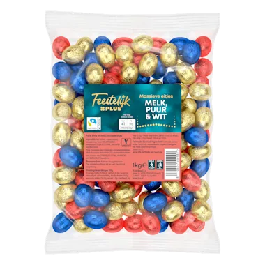 Feestelijk PLUS Paaseieren Melk Puur Wit massief FT
