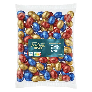 Feestelijk PLUS Paaseieren Melk Puur Wit massief FT