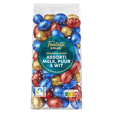 Feestelijk PLUS Paaseitjes Melk Puur Wit massief FT