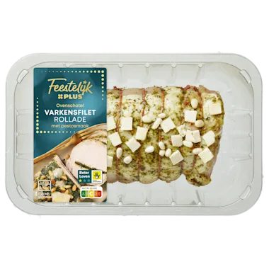 Gekruide varkensrollade met pestosmaak en kaasvlokken