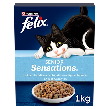 FELIX® Senior Sensations® maaltijden zien, ruiken en smaken natuurlijk heerlijk voor jouw kat. Iedere maaltijd is speciaal ontwikkeld voor katten van 7 jaar en ouder, en zit boordevol heerlijke, knapperige vormen en sensationele smaken.
