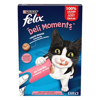 Maak kennis met een plezierige en leuke manier om je kat een snack te geven! De NIEUWE liquid snacks FELIX® Deli Moments™ hebben een onweerstaanbare smaak en romige textuur voor een ultiem genietmoment met je kat.