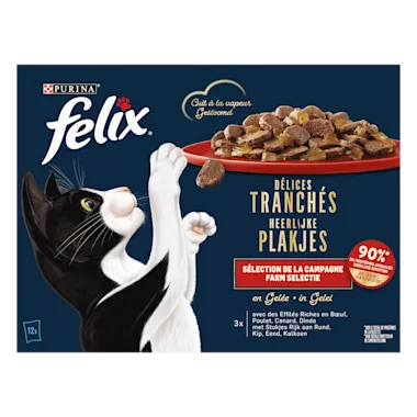 Dat is niet alles! FELIX® Heerlijke Plakjes is verkrijgbaar in een reeks heerlijke recepten, om elke dag de afwisseling te bieden waar je kat zo van houdt.