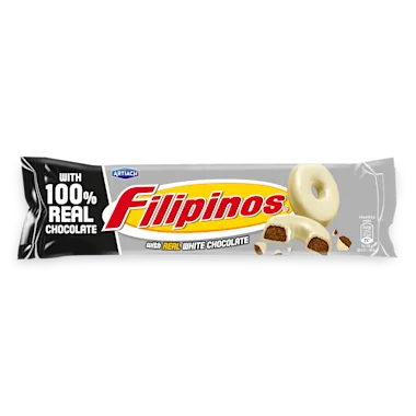 Krokante cacao koekjes gedipt in 100% echte witte chocolade (45%).