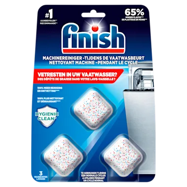 Finish Machinereiniger tijdens de wasbeurt verwijdert vuil en vet dat verborgen zit in je vaatwasser. Je machine wordt gereinigd terwijl deze je vaat wast: je hoeft geen lege wascyclus te draaien.