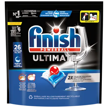 Met Finish Ultimate All in 1 Vaatwastabletten krijg je bij elke wasbeurt vanaf de eerste keer ultieme glans en uitzonderlijke reiniging!