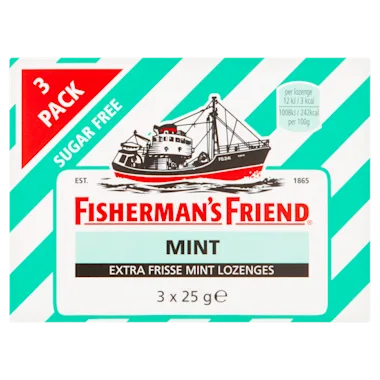 Fisherman's Friend Mint Suikervrij heeft een lekkere frisse mint smaak, die iets minder sterk is dan de originele pastilles. Al meer dan 150 jaar maken we onze krachtige pastilles op dezelfde authentieke wijze. Sterk spul, want een frisse geest maakt je sterker dan je denkt. Strong Stuff is Good Stuff!