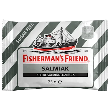 Fisherman's Friend Salmiak Suikervrij is speciaal voor Nederland ontwikkeld en heeft een lekkere sterke salmiak smaak. Al meer dan 150 jaar maken we onze krachtige pastilles op dezelfde authentieke wijze. Sterk spul, want een frisse geest maakt je sterker dan je denkt. Strong Stuff is Good Stuff!