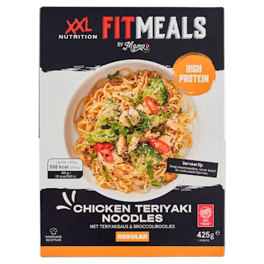Heerlijke noodles met geroosterde kipfilet in teriyakisaus en geblancheerde broccoliroosjes, diepvries. Voeg zelf wat sesamzaadjes, verse bosui en rode pepertjes toe voor een extra kick op je bord.