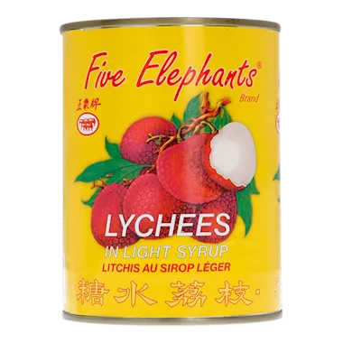 lychees, water, suiker, antioxidant: e300, voedingszuur: e330