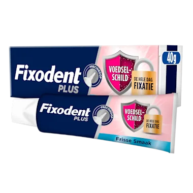 Gebruik Fixodent Plus Food Barrier Fresh elke dag om te voorkomen dat kleine voedseldeeltjes onder je kunstgebit vast komen te zitten.