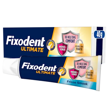 De beste technologie van Fixodent: helpt voorkomen dat etensresten onder het kunstgebit komen te zitten en biedt de hele dag een sterke fixatie voor de hele dag comfort. Met frisse muntsmaak.