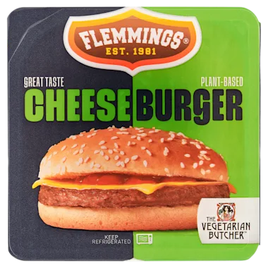 BROOD (43.9%) (TARWEbloem, water, suiker, gist, raapzaadolie, SESAMzaad, zout, emulgator (mono- en diglyceriden van vetzuren, veresterd met monoacetyl- en diacetylwijnsteenzuur), conserveermiddel (calciumpropionaat), gedeactiveerd gist, meelverbeteraar (ascorbinezuur)). BURGER (39.9%) (SOJAstructuur (73%) (water, SOJA-eiwit, TARWEgluten, SOJAbonennmeel, zetmeel (bevat TARWE)), raapzaadolie, ui, gemodificeerd zetmeel, verdikkingsmiddelen (methylcellulose, verwerkte eucheuma-zeewier), citrusvezel, suiker, aroma, azijn, zout, zuurteregelaars (kaliumlactaat, melkzuur), aardappeleiwit, geroosterde uienpoeder, knoflookpoeder, gistextract, kaliumchloride, peper, GERSTEmout extract, psylliumschil, natuurlijk aroma, kruiden, zwarte wortelsapconcentraat). SMELTKAAS (9.8%) (cheddar kaas (MELK), water, kaas (MELK), boter (MELK), magere MELKpoeder, smeltzout (natriumcitraten), weipoeder (MELK), MELKeiwit, zout, kleurstoffen (carotenen, paprika-extract), zuurteregelaar (citroenzuur), conserveermiddel (sorbinezuur), antiklontermiddel (zonnebloem lecithine)). TOMATENKETCHUP (6.4%) (tomaten, alcoholazijn, suiker, zout, kruiden en specerijen extracten (bevat SELDERIJ), specerijen). ALLERGIEADVIES: voor allergenen, inclusief glutenbevattende granen, zie VETGEDRUKTE ingrediënten.