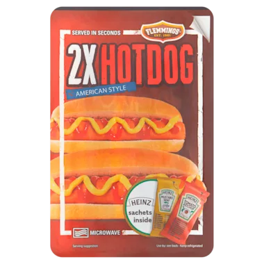 Ingrediënten: 45.8% brood*: (TARWEbloem, water, suiker, plantaardig olie (raapzaadolie), bakkersgist, bakkerszout, TARWEGLUTEN, emulgator (E471), glucosesiroop, conserveermiddel (calciumpropionaat, sorbinezuur), caseïnaten (MELK), natuurlijk aroma, meelverbeteraar (ascorbinezuur) enzymen). 45.8% worst (75% kippenseparatorvlees, kippenvet, water, zout, conserveermiddel (natriumnitriet), kruiden en specerijen, dextrose, brandewijnazijn, kruidenextract, stabilisator (E450), antioxidant (ascorbinezuur), voedingszuur (citroenzuur), rook (beukenhout)). 4.8% mosterd (water, alcoholazijn, 19% MOSTERDzaad, zout, suiker, specerijen). 3.6% tomaten ketchup (tomaat (148g per 100g tomatenketchup), azijn, suiker, zout, kruiden en specerijen extract (bevat selderij), specerijen). *KAN SPOREN VAN SESAM BEVATTEN.