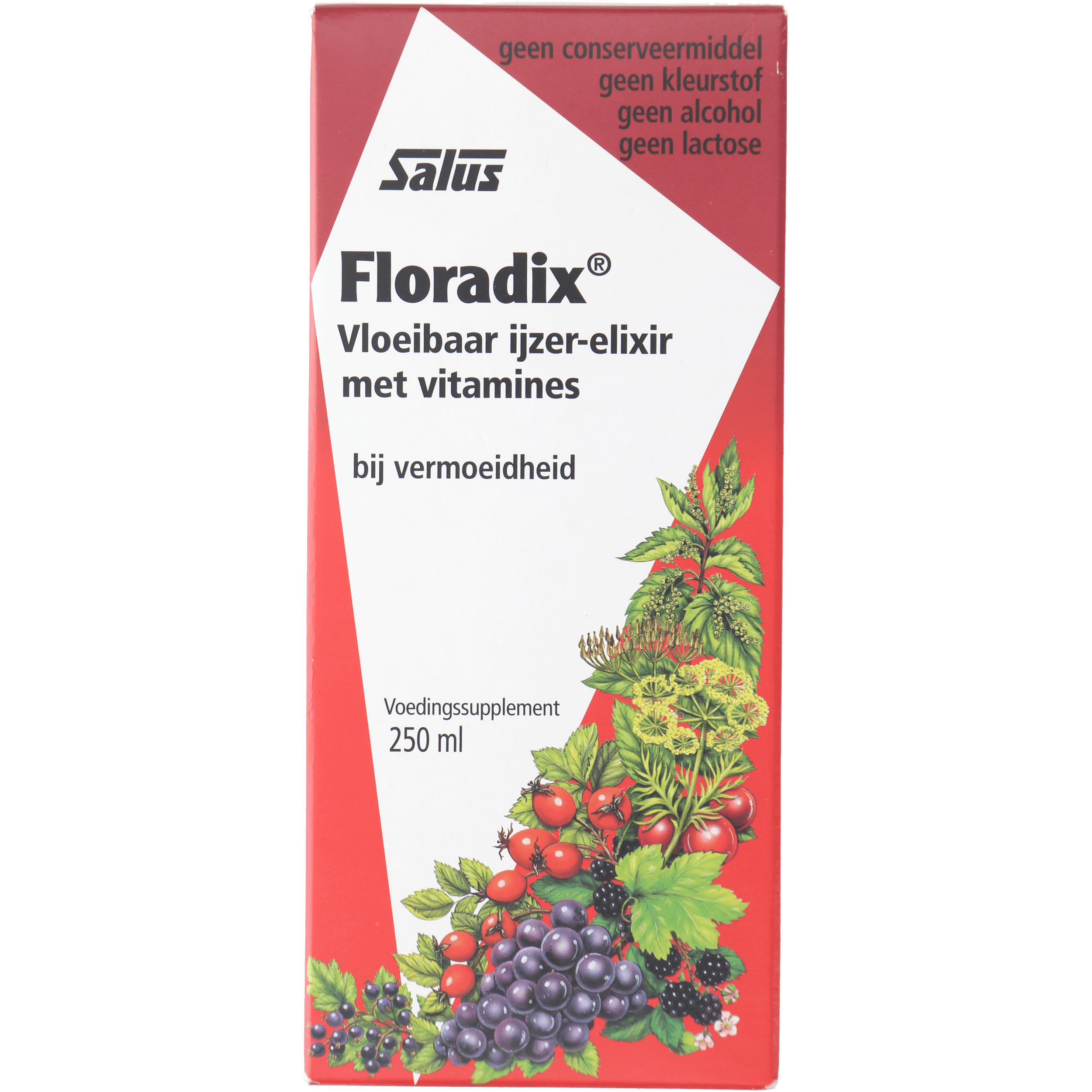 NL: Floradix is een vloeibaar ijzer-elixir aangevuld met groente-extracten en